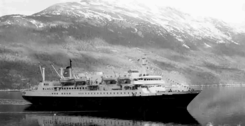 My Aunt Barb (age 61) and Uncle Art (age 73) set sail from Vancouver, Canada, on September 30, 1980, aboard the Holland-America cruise ship The Prinsendam. The first few days, of what was scheduled to be a month-long cruise ending in Asia, found them traveling through Ketchikan, Alaska gazing at the stunning icebergs in Glacier Bay. The ship made it’s way into the Gulf of Alaska on October 3 and, after an evening of entertainment by a group of young singers and dancers, they retired for the night. My aunt awoke shortly after midnight to an unusual rocking of the ship and reached for a switch to turn on the lights. Finding them not working, she woke my uncle and, in the dark, he groped around for the radio button so they could hear the garbled announcement barely audible through their closed cabin door. The message stated that there was a small fire in the engine room and all passengers were asked to leave their rooms and gather in the Lounge.